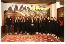 Galatasaray Sutopu Kadın takımı Nevşehir Belediye Başkanı Rasim Arı’yı makamında ziyaret etti. Kadınlar 1. Lig Altın grubunda mücadele eden Nevşehir Belediyesi Spor Kulübü Kadın Sutopu takımının davetiyle Nevşehir’e gelen Galatasaray Sutopu Kadın takımı Nevşehir Belediye Başkanımız Rasim Arı’yı makamında nezaket ziyaretinde bulundu. Nevşehir Belediyesi Başkanlık Makamında gerçekleşen ziyaret kapsamında Baş Antrenör Vladimir Markovic ve Yardımcı antrenör Rauf Denizer ile birlikte toplam 15 kadın sporcu Başkan Arı’yla güncel spor konuları hakkında görüş alışverişinde bulunurken Başkan Arı Nevşehir genelinde yapılan ve yapılacak olan spor yatırımları hakkında misafirlerine bilgiler verdi.