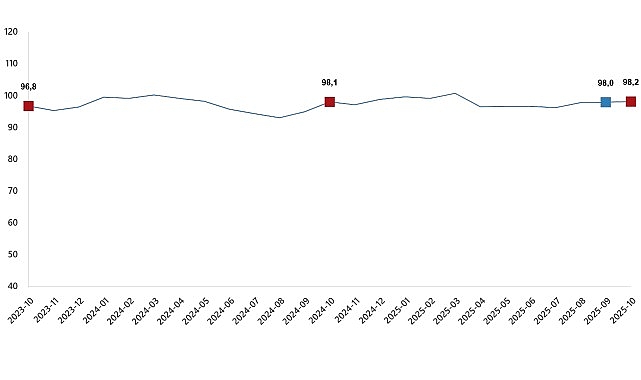 Ekonomik güven endeksi Eylül ayında 98,0 iken, Ekim ayında %0,3 oranında artarak 98,2 değerini aldı.